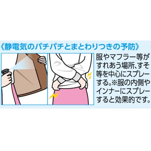 静電気防止スプレーのいいところは、衣類のまとわりつきや「バチッ」とした放電をやわらげてくれることなんです。