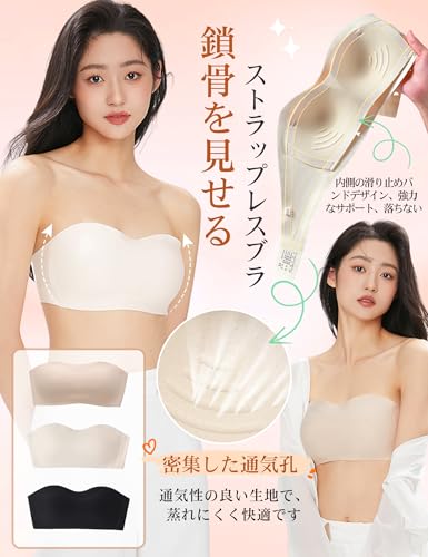 チューブトップ紐なしブラは、肩紐がなくても安定してバストを支えるために工夫されたアイテムなんです♪